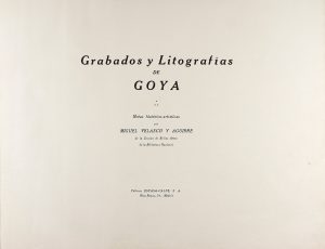 1928. GOYA Y LUCIENTES, FRANCISCO DE: GRABADOS Y LITOGRAFIAS DE GOYA. Notas histórico-artísticas por Miguel Velasco y Aguirre. Madrid: Espasa Calpe, 1928. Folio mayor apaisado. 16 p. + 288 reproducciones de las obras de Goya. Enc. en tela edit.,...