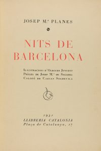1931. (BARCELONA). PLANES, JOSEP Mª: NITS DE BARCELONA. Ilustr. d´Oleguer Junyent. Pròleg de Josep Mª de Segarra. Colofó de Carles Soldevila. Barcelona: Libr. Catalonia, 1931. 8º mayor. 183 p., 2 h. Ilustr. en texto. Enc. en media piel,...