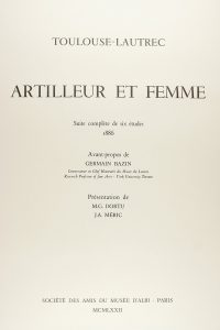1972. (BIBLIOFILIA-ARTE). TOULOUSE-LAUTREC: ARTILLEUR ET FEMME. Suite complète de six études 1886. Paris: Société des Amis du Musée d´Albi, 1972. 55x39 cm. 4 h. + 6 láms. sobre diferentes tipos de papel: entelado, de hilo y apergaminado.