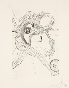 1974. (BIBLIOFILIA-BARÇA). DALI, SALVADOR; CORBERO, XAVIER; GARDY-ARTIGAS, JOAN; ARTIGAU, FRANCESC: HOMENATGE AL F.C. BARCELONA EN EL SEU 75 ANIVERSARI. Texto de Xavier Rubert. Barcelona: Baladas & Galdon, 1974. Folio imperial. 3 p. impresas y 4...