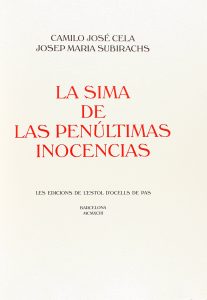 1993. (BIBLIOFILIA). CELA, CAMINO JOSE: LA SIMA DE LAS PENULTIMAS INOCENCIAS. Barcelona: Les Edicions de l`Estol d`Ocells del Pas, 1993. Folio mayor. Consta de sesenta y cuatro láminas con textos manuscritos (el último es el índice) de Camilo...