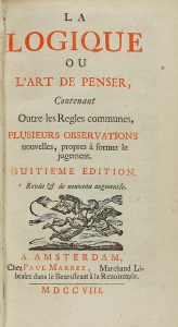 1708. (CIENCIAS). LA LOGIQUE OU L´ART DE PENSAR CONTENANT OUTRE LES REGLE COMMUNES, PLUSIEURS OBSERVATIONS NOUVELLES, PROPRES A FORMER LE JUGEMENT. Amsterdam: chez Paul Marret, 1708. 8º menor. 3 h. + 538 p., 3 h., 3 h. blancas con anotaciones...