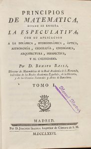 1776. (MATEMATICAS). BAILS, BENITO: PRINCIPIOS DE MATEMATICA DONDE SE ENSEÑA LA ESPECULATIVA CON SU APLICACION A LA DINAMICA, HYDRODINAMICA, OPTICA, ASTRONOMIA, GEOGRAFIA, GNOMONICA, ARQUITECTURA, PERSPECTIVA Y AL CALENDARIO. Madrid: Joachin...