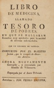 1800 ca. (MEDICINA). MAESTRO JULIAN: LIBRO DE MEDICINA LLAMADO TESORO DE POBRES EN QUE SE HALLARAN REMEDIOS MUY APROBADOS PARA LA SANIDAD DE DIVERSAS ENFIERMEDADES. Barcelona: Pedro Escuder, s.a. 8º menor. 3 h. + 279 p. Leve señal de óxido. Enc....