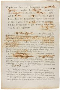 1872. (ESCLAVITUD- CUBA). CONTRATO ENTRE PEDRO REYNALDOS Y EL ASIÁTICO POLICARPO, NATURAL DE SU TAC (CHINA), DE 37 AÑOS DE EDAD, por el que Pedro lo toma hasta que se esclarezca su situación irregular, para que trabaje en el Ingenio Triunfo, en...