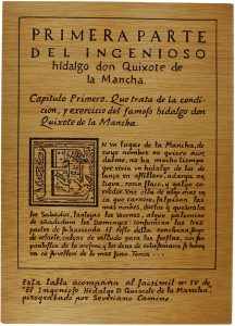 1989. (FACSMIL-CERVANTES). CERVANTES SAAVEDRA, MIGUEL DE: EL INGENIOSO HIDALGO DON QUIXOTE DE LA MANCHA. Edición facsímil de la obra pirograbada por Severiano Camino. Barcelona: Pirograbados del Quijote, 1989. Folio. 7 h. + portada + 3 h. + 197...