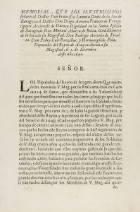 1642. (GUERRA DE CATALUÑA. MEMORIAL DE LOS DIPUTADOS DEL REYNO DE ARAGÓN, 1642). LAMATA, FRANCISCO (y otros): MEMORIAL, QUE LOS ILUSTRISSIMOS SEÑORES EL DOCTOR DON FRANCISCO LAMATA DEAN DE LA SEO DE ZARAGOZA [...] Y HERMENEGILDO POLO, DIPUTADOS...