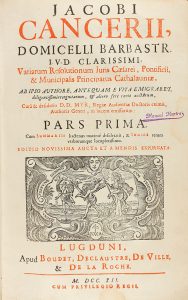 1712-1683. (HUMANIDADES). CANCERII, JACOBI: DOMICELLI BARBASTR. IUV. CLARISSIMI VARIARUM, RESOLUTIONUM JURIS CAESAREI, PONTIFICII, & MUNICIPALIS PRINCIPATUS CATHALUNIAE. PARS PRIMA (1712) Y PARS TERTIA (1683). Lugduni: apud Boudet, Declaustre, de...