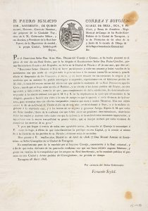 1808. (TARRAGONA-BANDO). CORREA Y SOTOMAYOR, PEDRO IGNACIO: [...] GOBERNADOR MILITAR, Y POLITICO DE LA CIUDAD DE TARRAGONA, ETC.[...] POR EL SR. D. ARIAS MON, DECANO DEL CONSEJO Y CAMARA, SE HA HECHO PRESENTE EN EL PLENO DE ESTE DIA UNA REAL ORDEN,...
