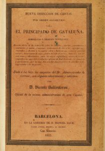 1833. (CORREOS-CATALUÑA). BALLESTEROS, VICENTE: NUEVA DIRECCIÓN DE CARTAS POR ORDEN ALFABÉTICO PARA EL PRINCIPADO DE CATALUÑA. ARREGLADO A ORDENES SUPERIORES. EN ESTA OBRITA SE DA NOTICIA DE TODOS LOS PUEBLOS, CASERIOS, MONASTERIOS, SANTUARIOS,...
