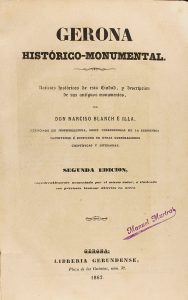 1862. (GIRONA). BLANCH E ILLA, NARCISO: GERONA HISTORICO-MONUMENTAL. Gerona: Libr. Gerundense, 1862. 4º. XIII + 369 p., 3 láms. grabadas. Enc. en media piel, nervios. Sellos estampillados de anterior poseedor.