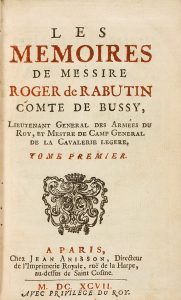 1697. (HISTORIA-FRANCIA). RABUTIN, ROGER DE: LES MEMOIRES DE MESSIRE ROGER DE RABUTIN COMTE DE BUSSY. Paris: chez Jean Anisson, 1697. 2 vols. en 8º menor. I: 489 p., 11 h. (falto de al menos la última p. de índices); II: Portada + 427 p., 10 h....