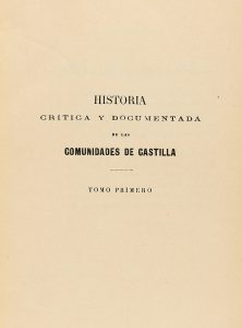 1897. HISTORIA CRITICA Y DOCUMENTADA DE LAS COMUNIDADES DE CASTILLA. Madrid: Real A. de la Historia (Est. Tip. de la Viuda e Hijos de M. Tello), 1897-1899. 5 vols. (de 6) en 4º. I: 584; Falto del II; III: 804; IV: 742; V:680; VI: 354 p....