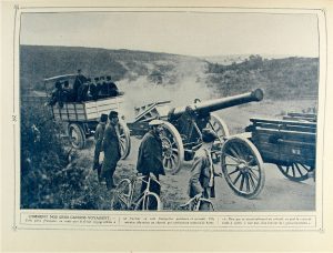 494 p. y VI: 502 p. Texto a tres columnas. Profusamente ilustr. con fotografías, mapas, retratos y dibujos en texto y 80 lám. en b/n y a color, algunas con roturas. Enc. en media piel y tela decorada, cortes pintados. Interesante obra que recoge el desarrollo del primer año de la Gran Guerra en sus documentos, batallas y protagonistas de los diferentes [Más:] LA VICTOIRE supplement au PANORAMA DE LA GUERRE.