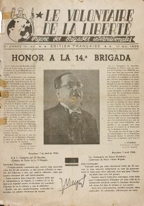 1938. (GUERRA CIVIL). LE VOLONTAIRE DE LA LIBERTE. ORGANE DES BRIGADES INTERNATIONALES. 2º ANNE Nr. 40. S.l.: s.i., 1938. Folio mayor. 12 p. Texto en columnas, con ilustr. Texto en castellano y francés. Cinta adhesiva y marcas de doblez.