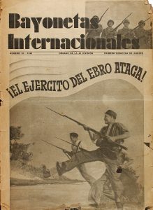 1938. (GUERRA CIVIL). BAYONETAS INTERNACIONALES. NUMERO 10-1938. ORGANO DE LA 45 DIVISION. PRIMERA QUINCENA DE AGOSTO. S.l.: s.i., 1938. Folio. 20 p. Texto a varias columnas con ilustr. Rústica, cubierta posterior con pequeña pérdida. Marcas de...