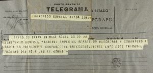 1944. (GUERRA CIVIL). CONJUNTO DE MÁS DE 20 CARTAS Y TELEGRAMA DE FRANCISCO BORRELL, CONDENADO POR EL TRIBUNAL DE REPRESIÓN DE LA MASONERÍA Y COMUNISMO,. la mayor parte cartas recibidas en la Prisión Provincial de Carabanchel Alto, Madrid....