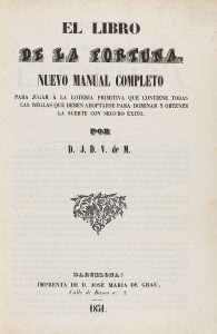 1851. (LOTERIA). EL LIBRO DE LA FORTUNA. NUEVO MANUAL COMPLETO PARA JUGAR A LA LOTERIA PRIMITIVA QUE CONTIENE TODAS LAS REGLAS QUE DEBEN ADOPTARSE PARA DOMINAR Y OBTENER LA SUERTE CON SEGURO EXITO. Barcelona: Imp. de D. José Maria de Grau, 1851. 8...