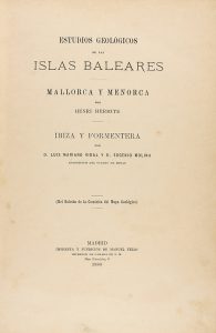 1888. (GEOLOGIA-BALEARES). HERMITE, HENRI; VIDAL, LUIS MARIANO; MOLINA, EUGENIO: ESTUDIOS GEOLÓGICOS DE LAS ISLAS BALEARES. MALLORCA Y MENORCA POR HENRI HERMITE. IBIZA Y FORMENTERA POR LUIS MARIANO VIDAL Y EUGENIO MOLINA. Madrid: imp. y fund. de...