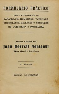 1900 ca. (GASTRONOMIA-CONFITERIA). BORRELL MONTAGUT, JUAN: FORMULARIO PRACTICO PARA LA ELABORACOIN DE CARAMELOS, BOMBONES, TURRONES, CHOCOLATES, GALLETAS Y ARTICULOS DE CONFITERIA Y PASTELERIA. Barcelona: Imp. Simó. 8º mayor. 480 p. Láminas con...