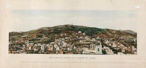1900 ca. (BARCELONA-TIBIDABO). BARCELONA VISTA GENERAL DE LA MONTAÑA DEL TIBIDABO. Barcelona: Fototipia Samsot y Misse, s.a. Fototipia, 45x93,5 cm. Puntos de óxido.