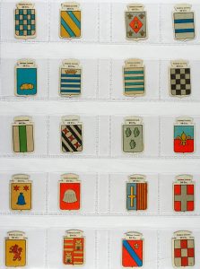 ALBUM CON ESCUDOS DE AUXILIO SOCIAL: 79 ESCUDOS METALICOS Y APROX. 500 DE CARTON, ENTRE ELLO LAS SERIES AUTORES (7), BLASONES (328), CONDESTABLES (37), GRANDES DE ESPAÑA (26), ...