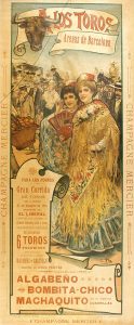 1901. (TAUROMAQUIA). PLA, C.: A LOS TOROS. ARENAS DE BARCELONA. Valencia: Imp. Ortega, 1901. Litografía a color. 51x22 cm. Impreso por ambas caras.