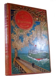 VERNE (Jules). L’Ecole des Robinsons, Paris, J. Hetzel, s.d. (1894). Gd in-8, cart. polychrome. Exemplaire au steamer avec catalogue 1894-1895 in fine. Plat postérieur Magnier type C2. Coiffes et coins sont légèrement élimés, très petit...