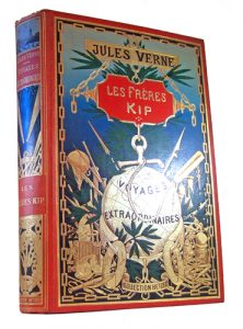VERNE (Jules). Les Frères Kip, Paris, J. Hetzel, s.d. (vers 1902). Gd in-8, cart. polychrome. Première édition grand in-8, exemplaire au globe doré de type 3. Illustré de 12 pl. h.t. en couleur. Défauts insignifiants.