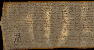 dos d’un âne, une étable et l’étoile du berger, le tout fermé d’un liseré et surmonté de deux clefs croisées et une croix posée. Ecriture parfois peu lisible, 47 x 15 cm.