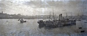 Haïfa à quai à Casablanca, une photogravure du paquebot Tonkin et deux plaques de verre négatives du port de Constantinople (dont une brisée à reconstituer).