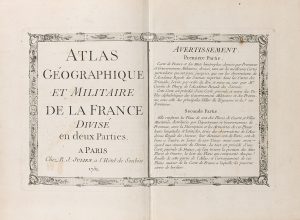 [atlas - cassini De thury (Jean Dominique)]. Atlas géographique et militaire de la France [^]. à Paris, Chez r. J. Julien, 1751[-1754]. in-4° (250 x 33mm), veau moucheté, fine roulette dentelée dorée encadrant les plats, dos à nerfs orné...