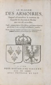 plats, dos lisse orné (reliure du xviie s.). Deuxième édition (après l'originale datée de 1579) de ce « traicté [^] reveu, corrigé, amplifié par l'auteur [^] » Nombreux bois héraldiques dans le texte. Exemplaire remboité avec quelques tout petits défauts à la reliure ; tout petit accident restauré en tête de la page de titre. « Les bois qui ornent ce livre [^] sont d'une [^] belle qualité » (Saffroy, I, 2066).