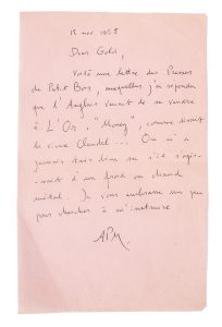 Pieyre De Mandiargues André (1909-1991). 15 lettres autographes signées, 1967-1975, à Régine deforges ; 17 pages formats divers, dont 3 cartes postales, certaines sur papier rose et au stylo rouge ou vert, 5 enveloppes. Bel ensemble autour de...