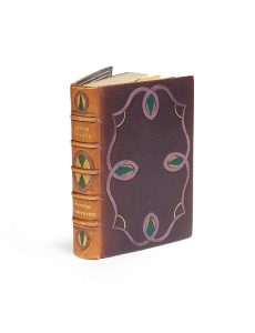 39. On joint :. France (Anatole). L'Anneau d'améthyste. Paris, Calmann Lévy, 1899. In-12, maroquin violet de H. Altermann, décors d'entrelacs mosaïqués aux plats et au dos, coupes filetées, coiffes guillochées, doublures mosaïquées, doubles gardes de papier marbré et de satin brodé, tête dorée, couvertures et dos conservés. Edition originale. Dos passé.. Lucile de Chateaubriand. Ses contes, ses poèmes, ses lettres. Précédées d'une Etude sur sa vie par Anatole France. Paris, Charavay, 1 879. In-1 2, demi-chagrin bleu de l'époque, tête dorée.