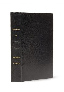 un des 50 exemplaires sur vélin blanc lana, seul grand papier (n° 46). Roman posthume, Georges Bataille (1897-1962) étant mort quatre ans plus tôt. “Il devait constituer, à la suite de Madame Edwarda, le second volet d'une tétralogie dont les parties suivantes sont restées à l'état de projet” (Pia, Dictionnaire des œuvres érotiques, p. 300.- Pia, Les Livres de l'Enfer, col. 844- 845). belle reliure doublée de Régine deforges.