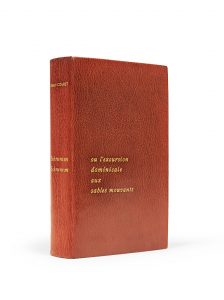 Combet (Fernand). schrumm schrumm ou l’excursion dominicale aux sables mouvants. Paris, Pauvert, 1966. In-8, maroquin havane, tête dorée. Edition originale : un des 60 exemplaires sur pur fil Johannot, seul grand papier (n° 4). Premier livre de...