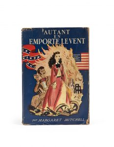 Mitchell (Margaret). autant en emporte le vent. (Gone with the Wind). Roman. Paris, Gallimard, [1939]. Fort in-8 broché, jaquette illustrée. Première traduction en français par Pierre-François Caillé. Elle est illustrée d’une carte au verso...