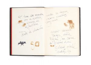 sujet. Ecrivain et libraire, Gérard Oberlé fut un des fidèles de Régine Deforges ; ils voyagèrent notamment ensemble à Cuba. Régine Deforges évoque ce voyage très particulier dans ses mémoires (L'Enfant du 1 5 août, pp. 41 7-41 8). Bel envoi autographe signé et illustré à Régine Deforges : « Et tous les monstres, tous les spectres, toutes les larves, les lémures, les ombres cruelles, les fantômes sanglants, toutes les chimères. seront douces ymages, chère Régine, au cœur du grand ami Gérard Oberlé ». On joint :. Levy (Maurice). Le Roman « gothique » anglais, 1764-1824. Toulouse, Faculté des Sciences humaines, 1968. In-8, demi-chagrin rouge à bandes.
