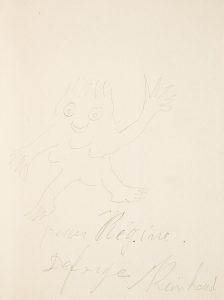 belge, Reinhoud d'Haese (1928-2007) fut membre du groupe cobra. Exemplaire enrichi d'un envoi autographe signé de l'artiste à Régine Deforges, avec un dessin original au crayon.