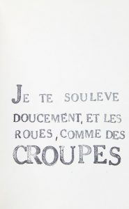 Soisson, artiste à Paris, pour Régine Deforges. Bon anniversaire. » L'ouvrage est imprimé à l'aide de caractères mobiles employés l'un après l'autre (sauf le titre au feutre à l'aide de pochoirs) sur un carnet. Signature autographe figurant après l'achevé d'imprimer, du jeudi 14 août 1986. L'éditeur Acayoulge est une enseigne fictive inventée par l'artiste. Peintre, graveur et sculpteur apparenté à l'Art Brut, proche de Dubuffet qu'il rencontre dès 1969, Jacques Soisson (1928- 2012) s'est également intéressé à l'art-thérapie et aux dessins d'enfants, dont il constitua une importante collection. Il a composé l'illustration de couverture de l'ouvrage de F.J. Temple sur Henry Miller réédité par Régine Deforges en 1977. Un alphabet de sa conception se trouve reproduit dans le Livre du point de croix publié par Régine Deforges et Geneviève Dormann en 1987.