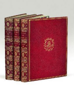 Rabelais (François). Œuvres […], avec des remarques historiques et critiques de Mr. Le Duchat. Nouvelle édition. Amsterdam, Jean Frédéric Bernard, 1741. 3 volumes in-4, maroquin rouge, triple filet doré, chiffre doré au centre, dos orné,