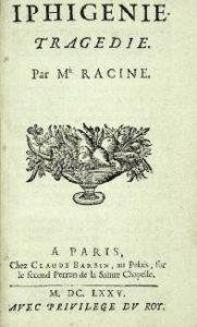 Racine (Jean). Iphigénie. Paris, Claude Barbin, 1675. In-12, maroquin vert foncé, double filet à froid autour des plats, dos à nerfs orné de même, tranches dorées (Ateliers Laurenchet).