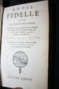 Advis fidelle aux véritables hollandois.A la sphère, 1673, in-16 vélin.