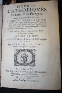 Heures catholiques en Latin et François.Paris, 1657, in-8 marbré rouge.