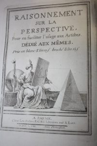 Raisonnement sur la perspective.Parme, Frères Faure, 1758, petit in-folio broché bilingue franco-italien.
