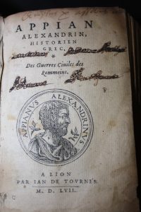 Appian Alexandrin : Des guerres civiles des Rommeins.Lyon. Jean de Tournes, 1557, in 16, velin.