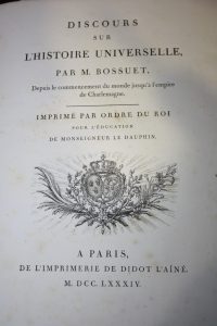 Bossuet : Discours sur l'histoire universelle.Paris, Didot, 1784, in 4, broché, non rogné.