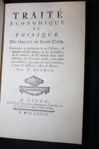 Buc’hoz :Traité Economique et physique des Oiseaux de Basse Cour.Liege, Desoer, 1777, petit in-8 basane fauve.