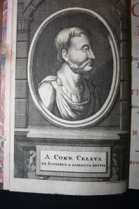 Celsi (Aur. Corn.) :De Medicina, libri octo.Basilae, 1748, in-8 basane marbrée.